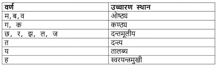 उत्तर : पाँचओटा अल्पप्राण वर्ण – ग, व, त, च, ल पाँचओटा महाप्राण वर्ण-स, ह, ख, भ, घ