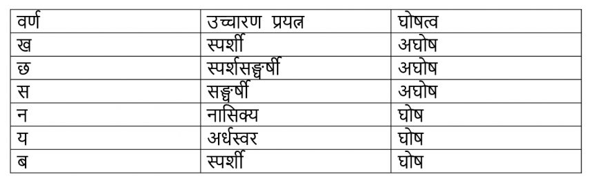 ८. उच्चारण प्रयत्न र घोषत्वका आधारमा दिइएका वर्णहरूको पहिचान गरी लेख्नुहोस्